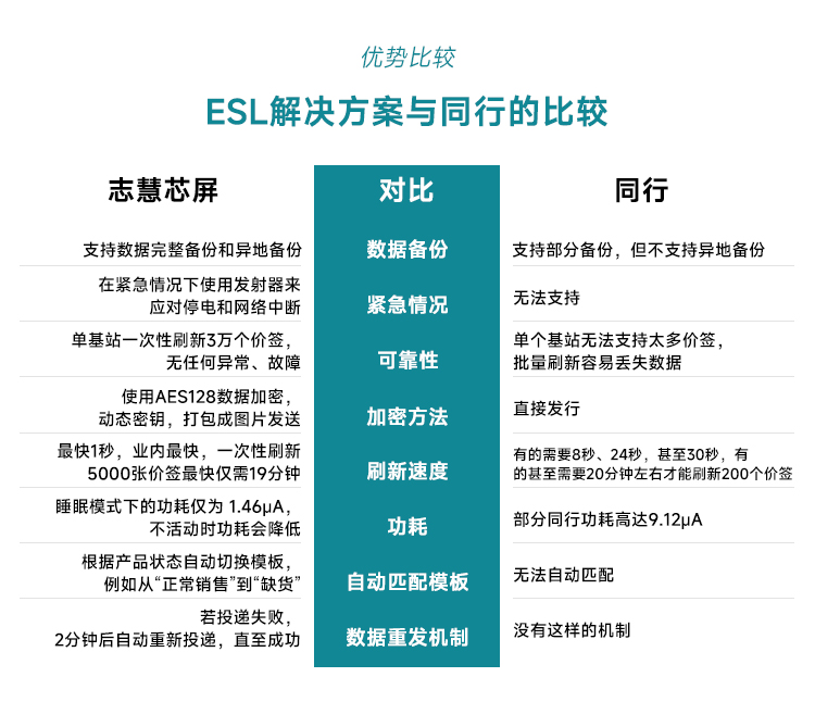 • 志慧芯屏电子货架标签(ESL)是一种理想的数字无线显示系统,可以快速高效地无线更新货架标牌上的内容,包括产品定价和产品相关信息。